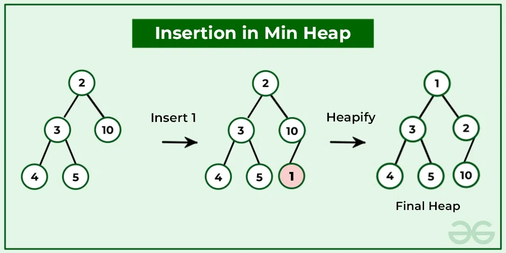 | 삽입 (Insert) | 마지막에 원소 추가 후 sift-up | O(log n) | 트리 높이만큼 비교/교환 |