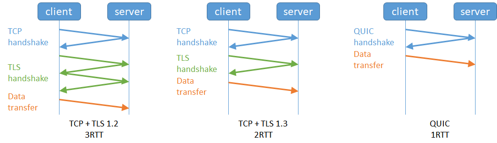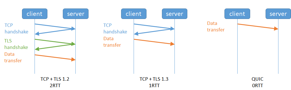 - 보안 세션을 설정하기 위해 한 번의 handshake만 필요 (첫 연결 설정에 1-RTT만 소요)