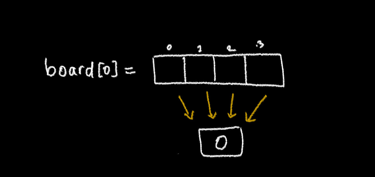 하나의 정수형 객체 0을 생성하고, 배열의 각 요소들이 이를 가리킨다.