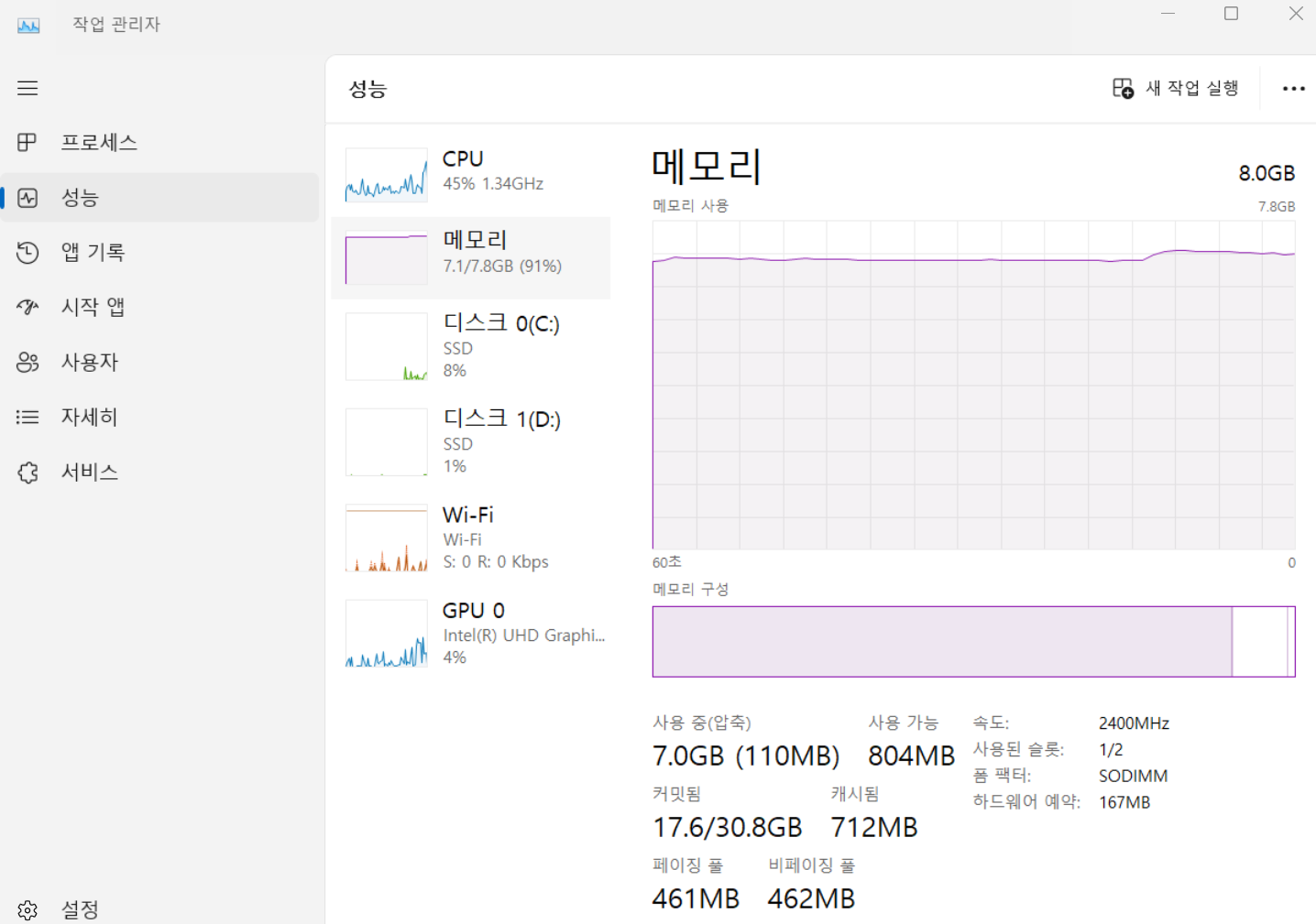 => 램 8G는 평소에도 부족해서 최소 16G SSD 이상되어야 할 것 같음